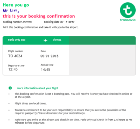 트랜사비아 항공 예약 후 이메일로 PDF 티켓이 전달된다.